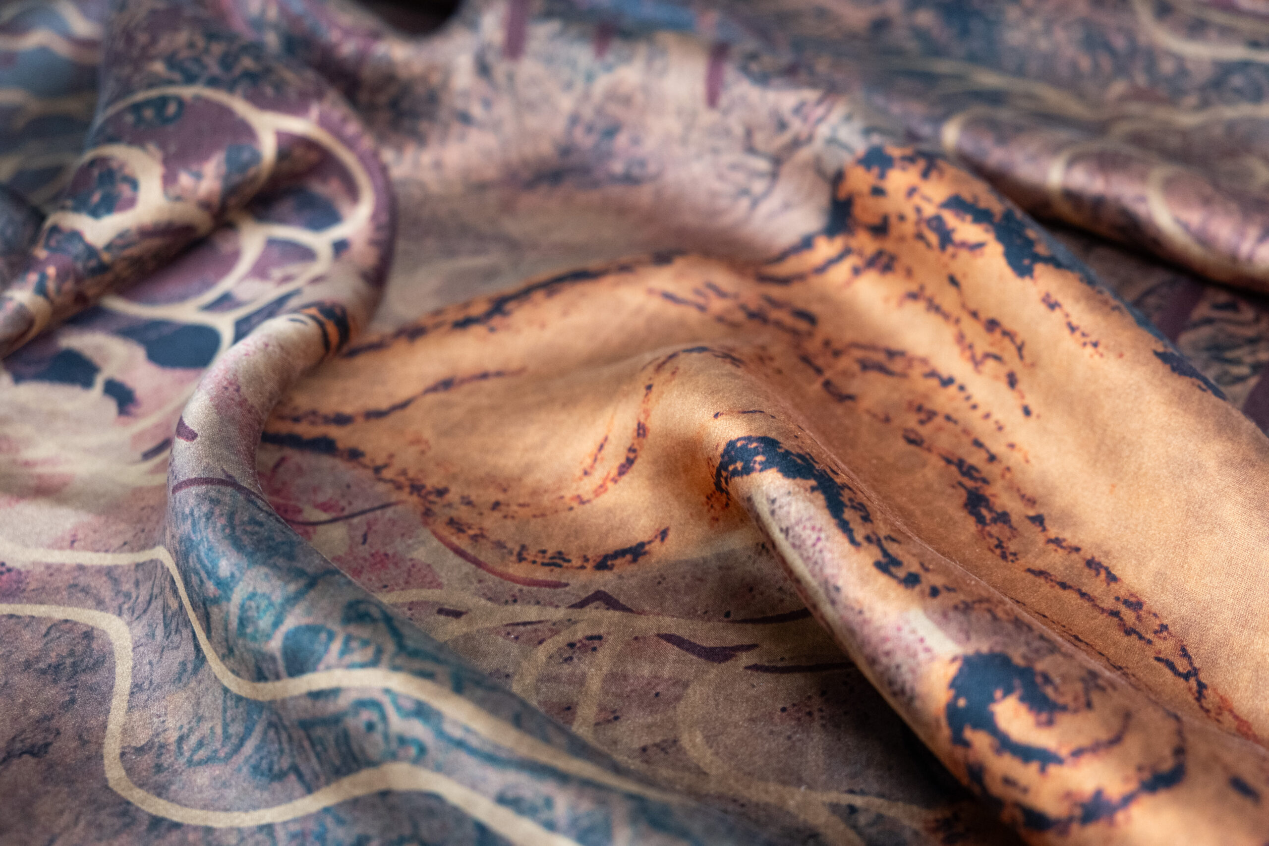 这种面料生于大地、利于大地,从自然中来、到自然中去,与自然循环相依,是万物精华的产物,汇聚了中华民族“天人合一”的千年智慧。其独特的染整工艺,造就了香云纱正反异色、透气清爽、挺括轻体的独特质感,令其享有“软黄金”的美誉。