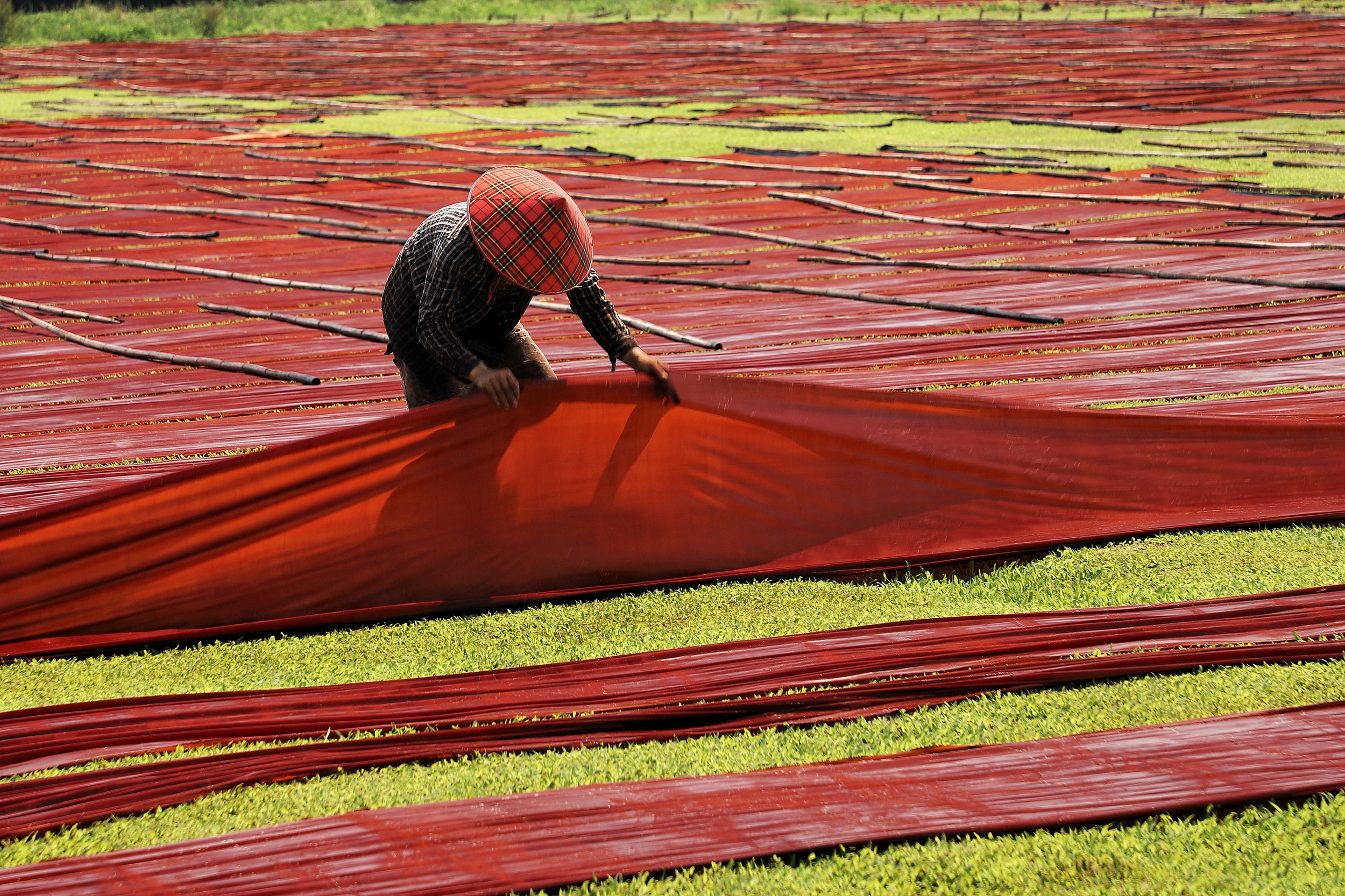 香云纱的制作工序之一:晒纱。