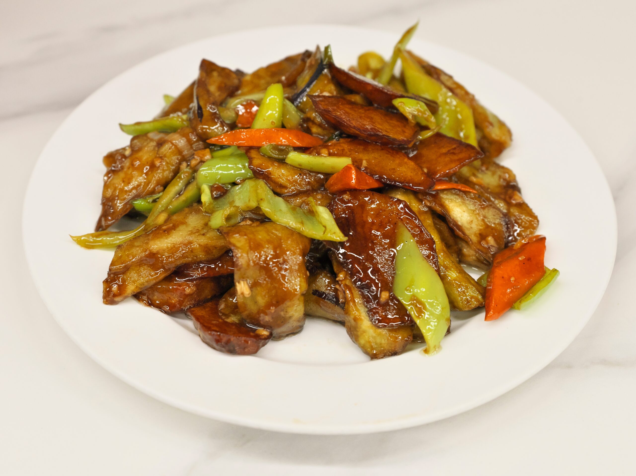 别看地三鲜只有土豆、茄子、青椒三样简单的食材,但吃起来层次却丰富得很。土豆炸过之后,外面焦香酥脆,里面绵软香甜,吸饱了酱汁。茄子炸得软烂,像海绵一样吸满了汤汁。青椒保持着脆嫩的口感,一嚼就是一股清香,正好解了土豆和茄子的油腻。土豆的绵、茄子的软、青椒的脆,还有浓稠的酱汁拌在一起,总能让人不知不觉就多吃两碗米饭。