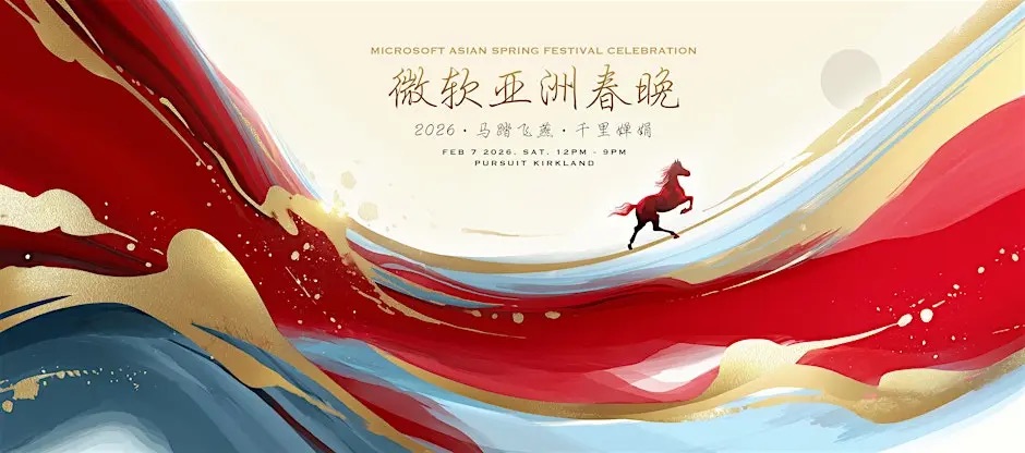 2月7日,2026年微软亚洲春晚将在Pursuit Kirkland举办整日线下春节联欢活动,内容包括春节游园会、下午场演出以及最万众瞩目的晚场演出等。此次活动延续了微软亚洲春晚独具一格的规模与质量,为当地华人带来集娱乐、美食与精彩节目于一体的独特春节体验。