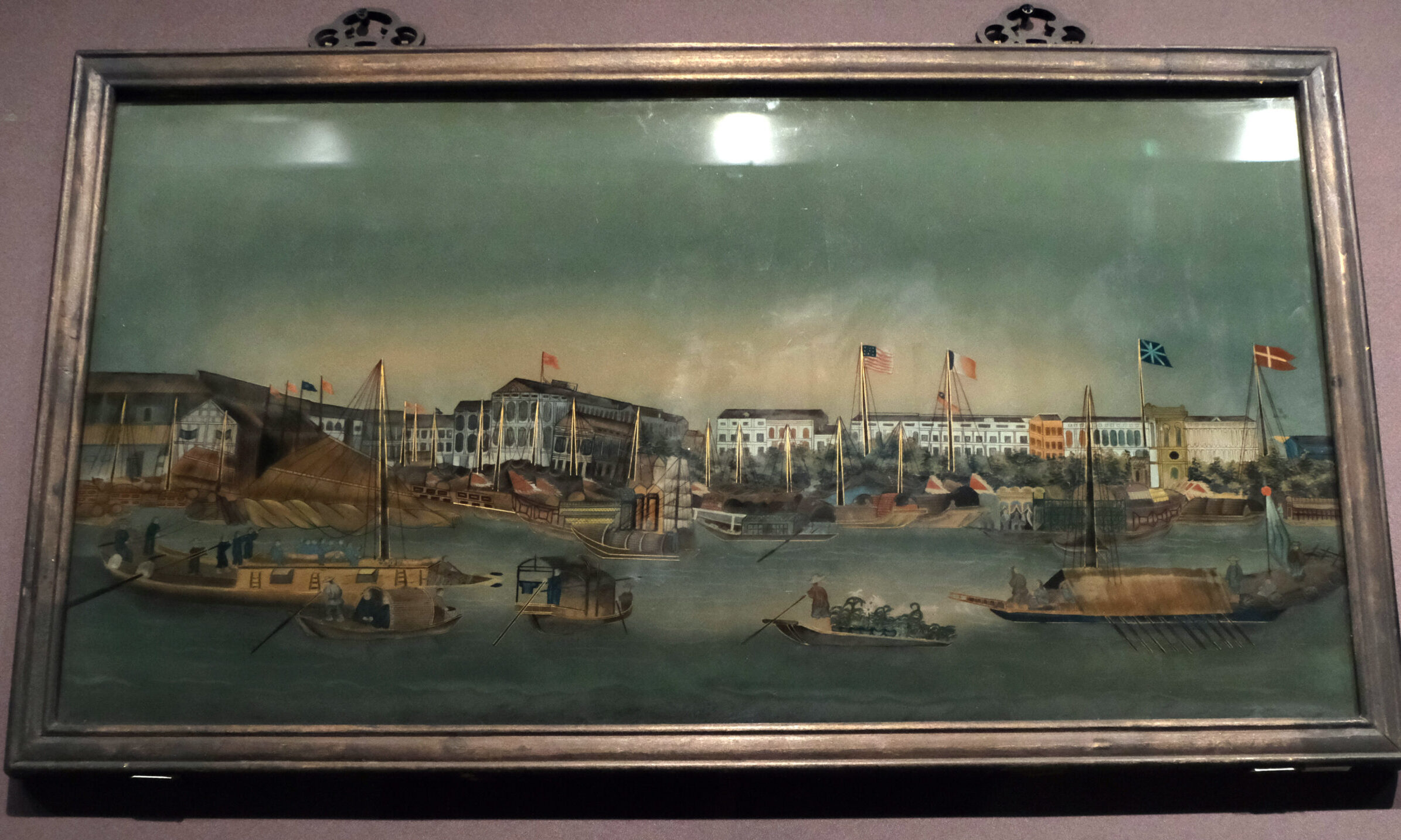 十九世纪广州十三行港口风景玻璃画(图/CNSphoto)