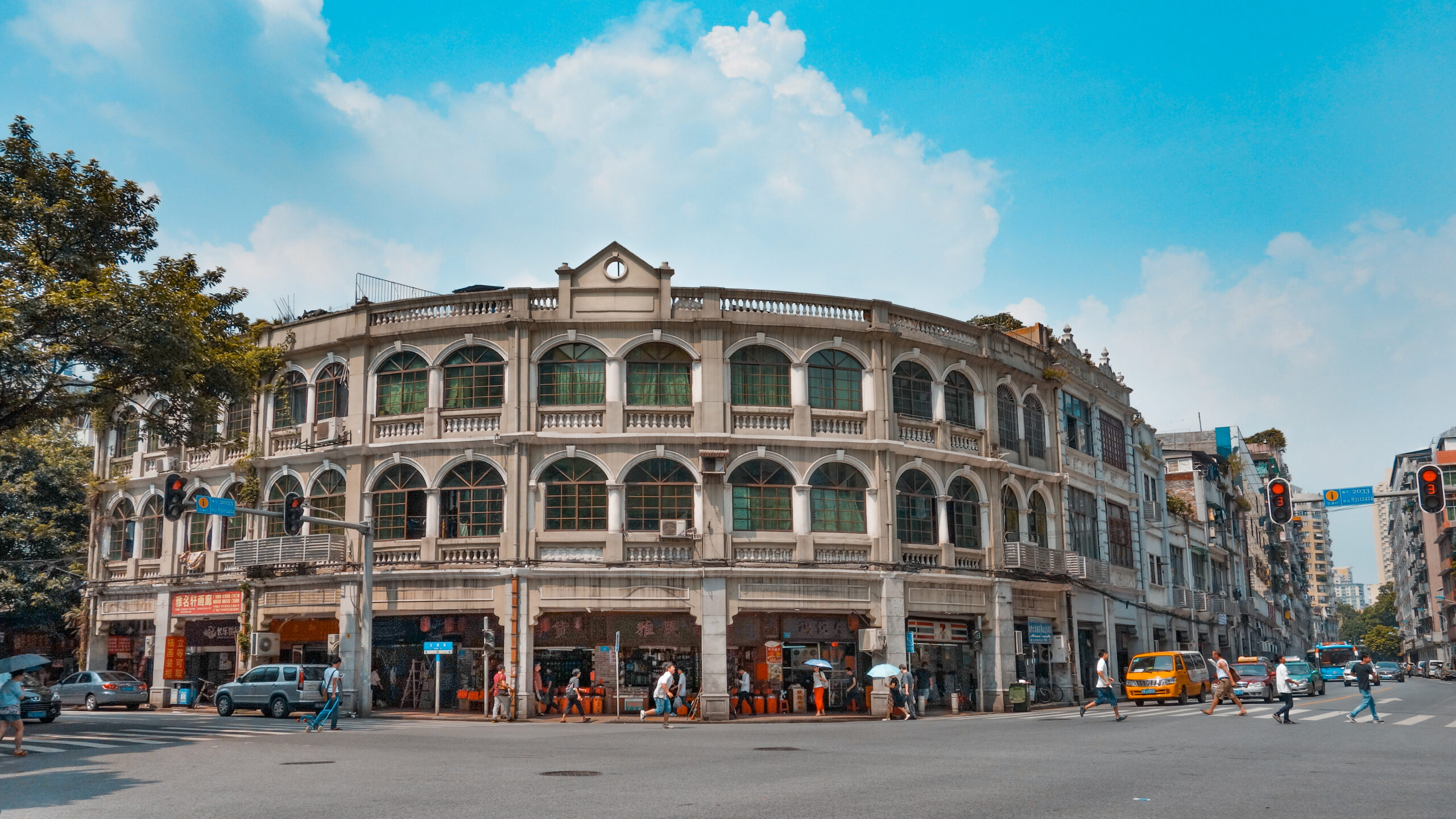 这里曾是广州重要的商埠,后来沦为英法租界地。1890年建造的法国驻穗领事,是仿哥特式的建筑风格,入口处有山尖窗和八角形攒尖顶采光窗,内部镶嵌了七彩玻璃门窗,如梦如幻。建于清代的汇丰银行,灰白色的花岗石修筑的古典山花门,给人一种庄严肃穆的感觉。如果有幸,还能看到做集会礼拜活动的盛大场景。