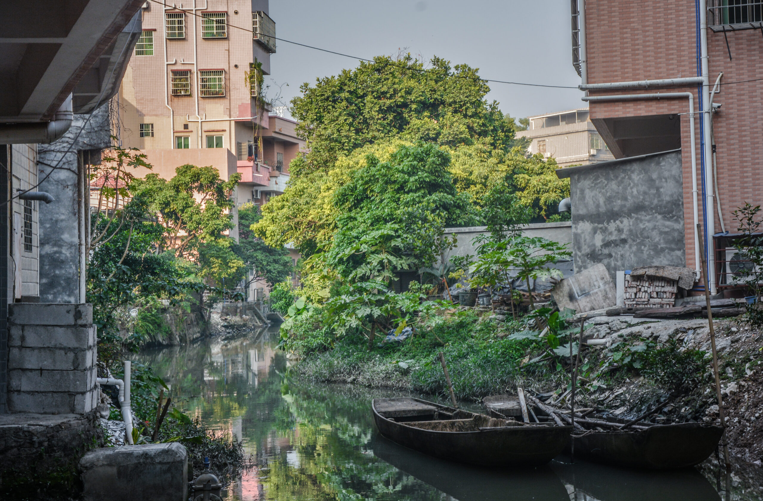 “水上花世界”的浪漫让人着迷,海珠区珠江岸边的小洲村更是将这份浪漫推到了极致。在这里,你可以看到滨海人民就地取材的智慧杰作。小洲村内,密集的水网与珠江相连,最后融入大海怀抱。由于地处珠江入海口,这里自古盛产生蚝,剥离蚝肉后的蚝壳则是建房的重要材料。