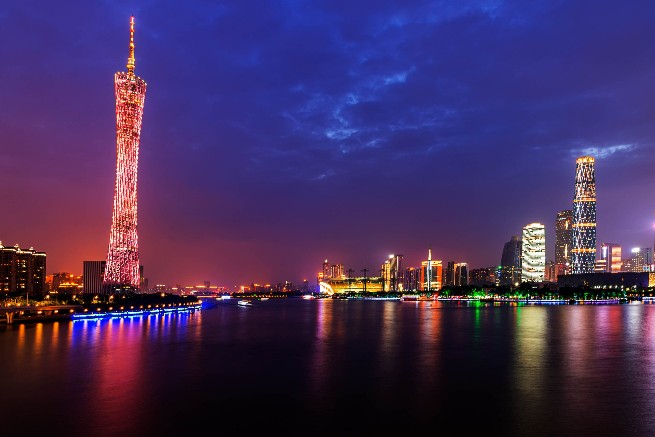 晚上,珠江畔现代的浪漫都市