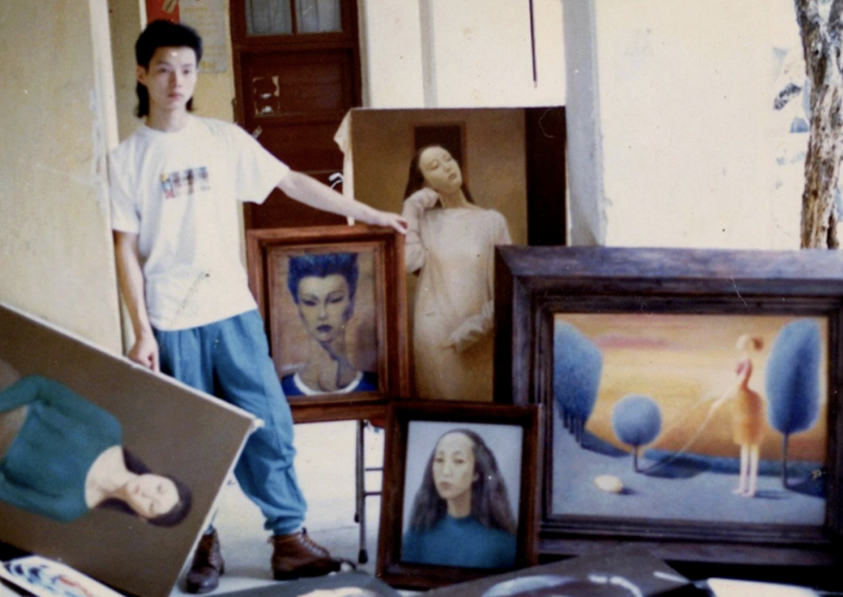 这份对孤独的偏爱,早在童年便已生根。六七岁时,他攥着毛笔给画里的气球上色,偏要让色彩比现实更艳烈,“那种独自造美的愉悦,像糖渍在心里,一辈子都甜”。家庭的艺术浸润更让这颗种子发了芽:戏曲导演、作家父亲的舞美手稿、画家兄弟的笔墨切磋、制片人母亲的审美启蒙,让他从小便懂得——艺术并不单一存在。