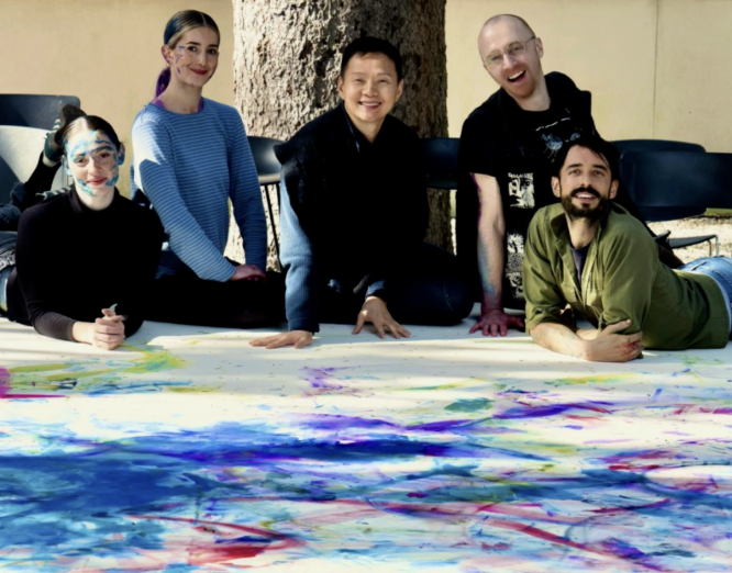 沈伟(中)与舞蹈艺术团成员们在“静/动”展览合影(图/卡托纳艺术博物馆)