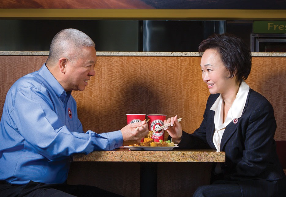 熊猫快餐创始人程正昌(左)、蒋佩琪夫妇。图/Panda Express官网