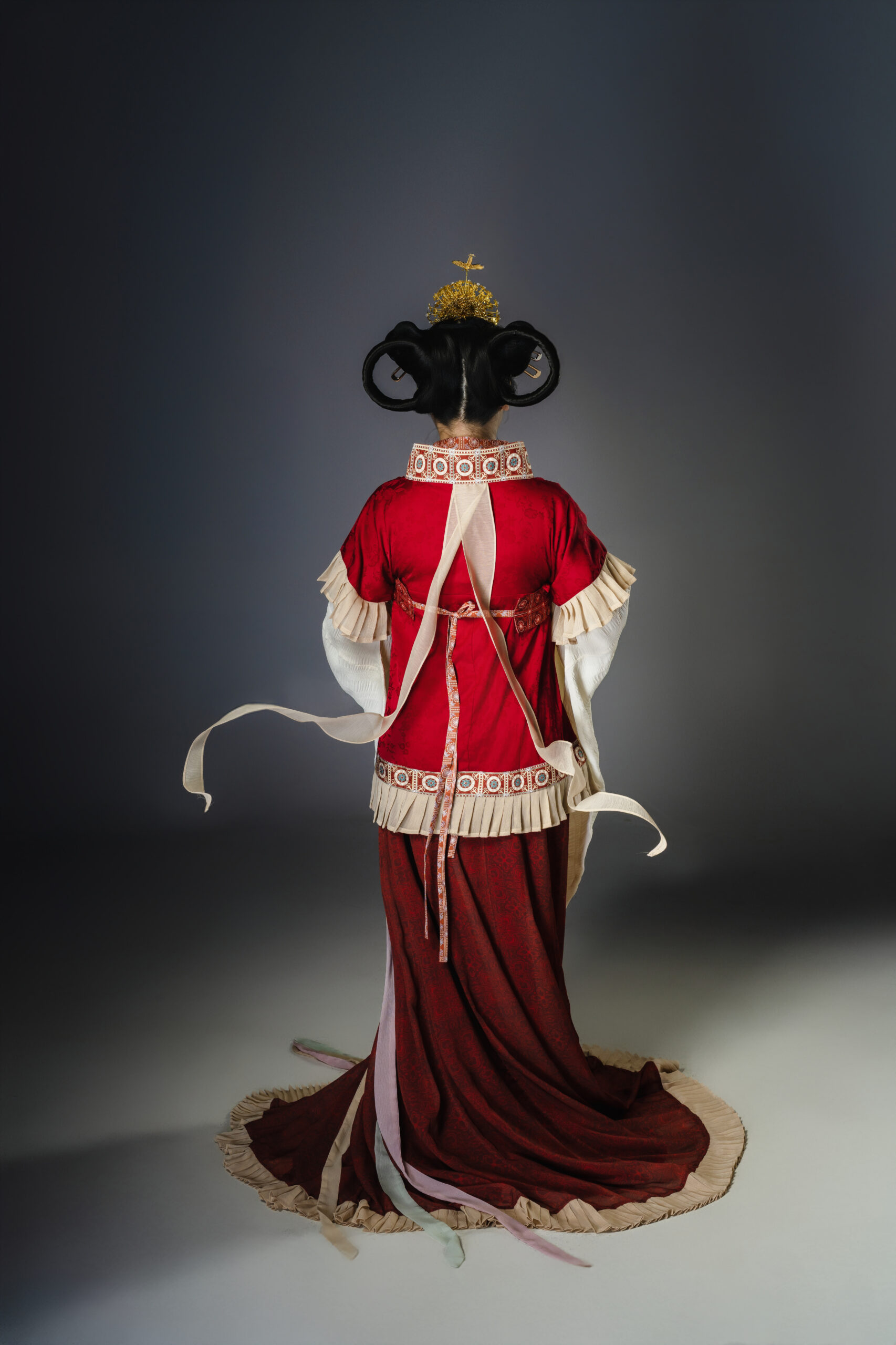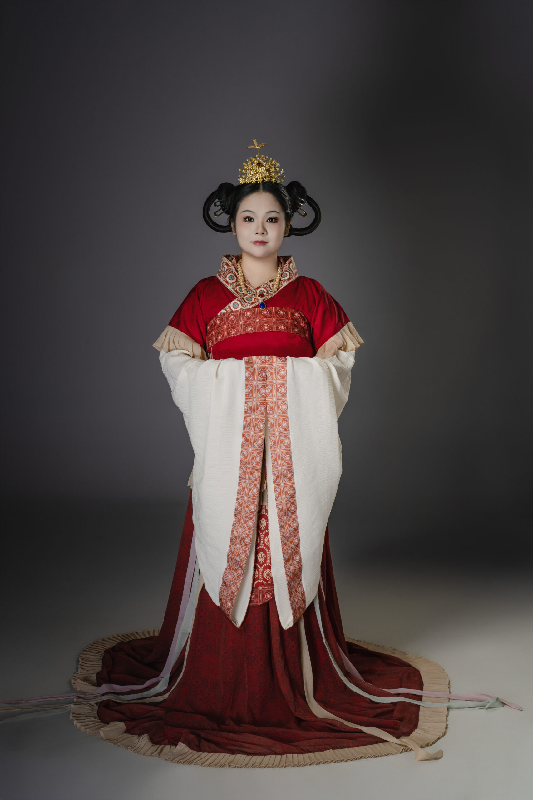 隋代贵族女子一般穿着这种礼服出席各类盛大场合。它承袭了南北朝时期的雅致风格,又在装饰细节上吸收了异域工艺。这类隋代汉服不仅体现了贵族女性在礼仪场合中的身份地位,也反映了当时社会对于服饰文化的重视。通过复原与研究,我们得以一窥隋代宫廷贵族的生活风貌,并进一步理解这一承上启下、东西文明交流的时代在服饰发展史上的重要意义。